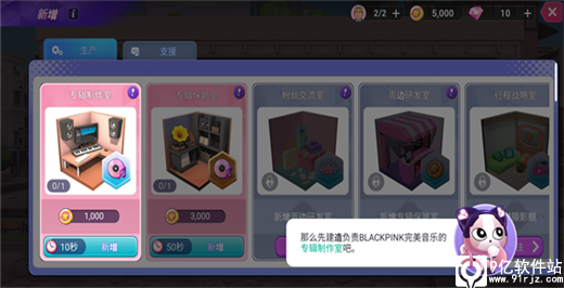 2、游戏融入了建造的玩法,玩家需要再不断的升级中建造各种不同的场馆,为艺人提供更多的游戏场景。