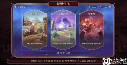 而主线任务完成到一定地步,会解锁“成长之路”。“成长之路”分为“修炼之路”、“探险之路”、“讨伐战”等,分别可以获得不同的成长所需的道具和装备。