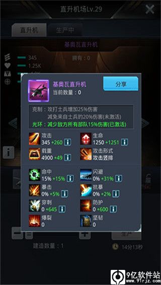飞机特点:增加对特种兵伤害25%,减免特种兵伤害20%,自带命中。