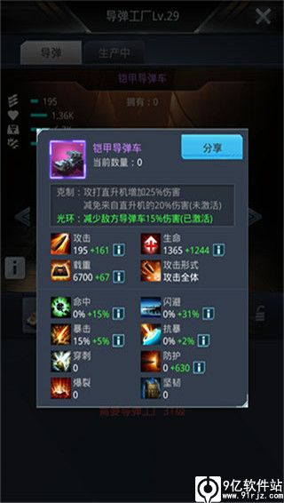 导弹车特点:攻打直升机增加25%伤害,减免导弹车伤害20%,自带暴击。