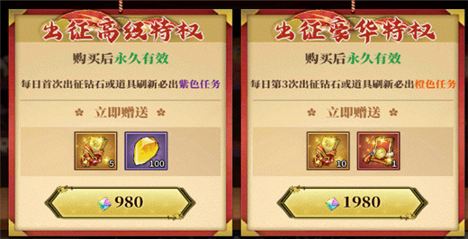 添头类型的特权,钻石富裕的情况下建议购买,橙色紫色的出征任务给的道具奖励好