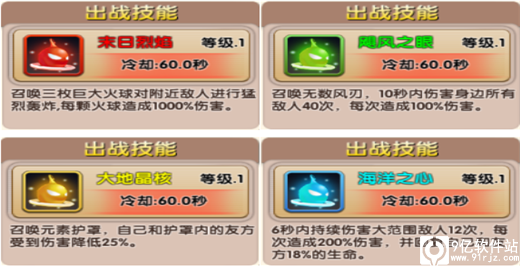 12、冒险家们可将四种属性精灵全部拥有,但出战时仅能指定其中一种元素精灵,建议冒险家们根据自身的需求来选择出战的元素精灵,出战的元素精灵会将自身基本属性和元素属性附加给主人,另外主人可以手动释放此元素精灵的技能!