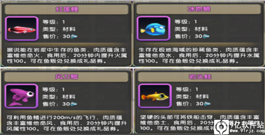 22、冒险王3OL折扣版跨服小镇新曾以下几种鱼类,使用这几类鱼后会临时增加玩家的元素属性,可在短时间内有效提升各类元素属性
