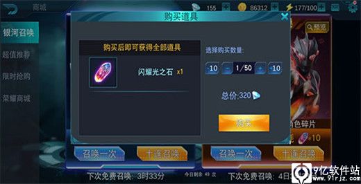 而超银河召唤每次需要消耗一枚闪耀光之石,可以获得40个英雄碎片。