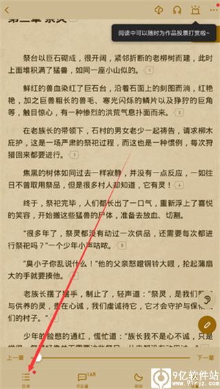 5、如果想看其他章节的内容,点击下屏幕任意位置,底部就会出现选项,点击左下角“目录”;