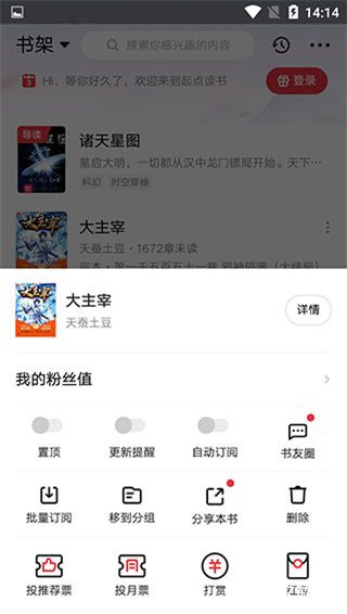 7、加入书架后你就可在书架中看到该小说了,也可以设置更新提醒,自动订阅。