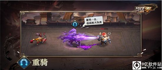 重骑部队是破盾能手,能够快速冲破敌人的阵型,打乱敌人进攻节奏,让敌人瞬间陷入混乱之中。在开战时,重骑部队会发起冲锋,造成巨额无视防御的伤害,针对敌方前排防御高的盾兵有奇效。