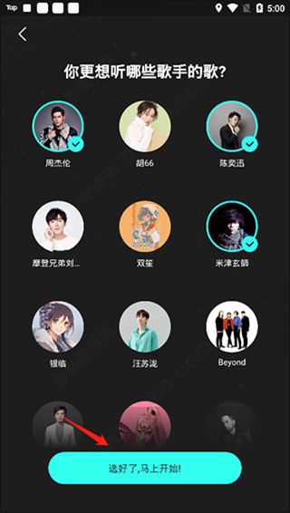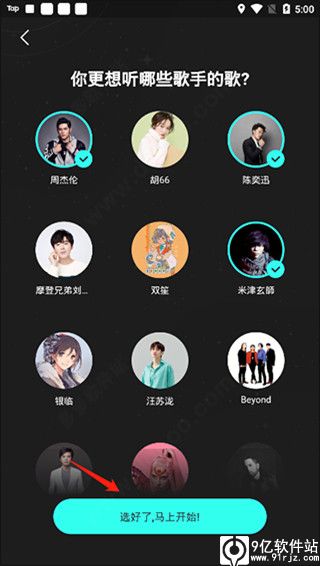 2、接着还会问更想听的歌手,以便更好的推荐你喜欢的歌曲。