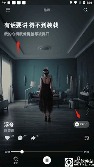 3、随后即可进入软件开始使用,在软件中直接是视频音乐模式,在左上方可看到歌词,同时也支持点击右侧“+”自己来进行制作背景。