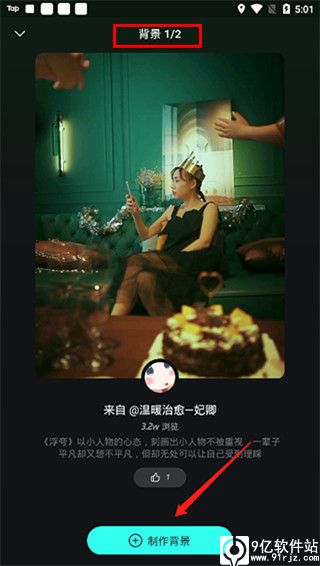 4、不仅支持自行制作背景,还能在上方看到目前该音乐供提供了2个视频背景。