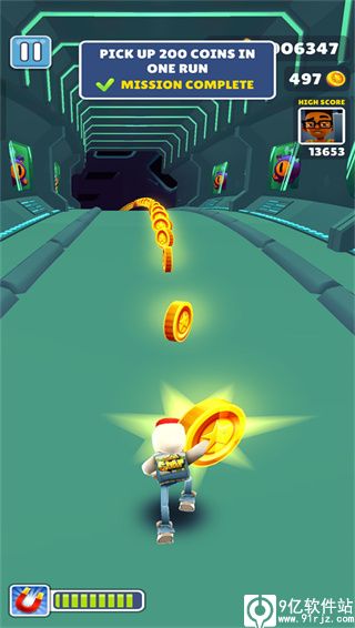 7、同时我们也要在地铁跑酷空间站版本中不断收集金币以及其他的道具,比如磁铁、喷气背包等,捡到磁铁可以收集路两边的金币,捡到喷气背包后角色会进入空中的电缆上飞行,不会有任何障碍,同时也有大量金币;