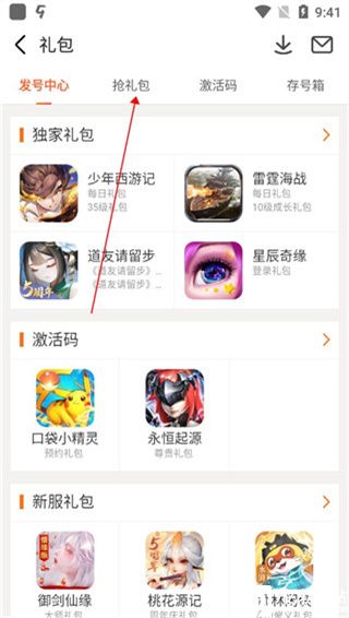5、在抢礼包界面中找到自己所玩的游戏并点击进入领取。