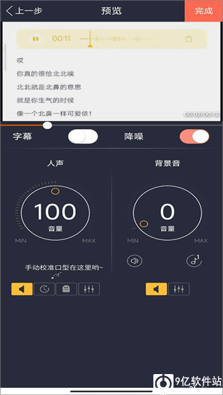 3、保存之后你可以进行对杂音的调整,最后点击右上角的完成