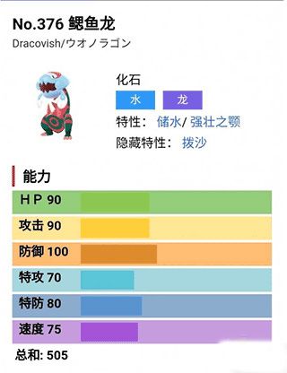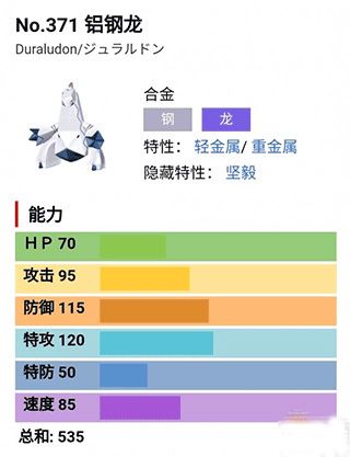 1、第一名、铝钢龙铝钢龙是本作最强的宝可梦,自身不仅拥有钢属性和龙属性可以克制大部分的属性攻击,还拥有高额的属性(85的速度、95的血量、120的特攻、115的防御),因此能够力压群雄,位居榜首。