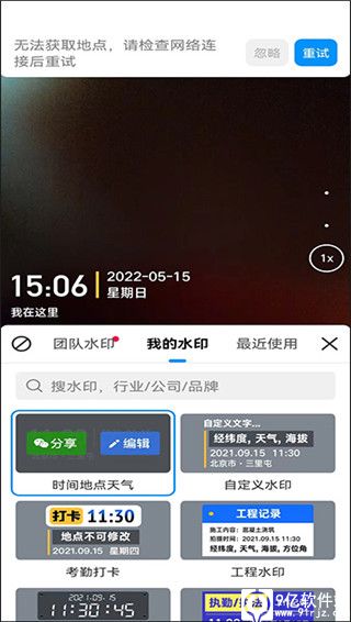 4、进入相机页面,点击“水印”,确定“日期地点水印”。