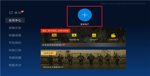 2.进入会员中心页面,移动光标点击【登录帐户】;