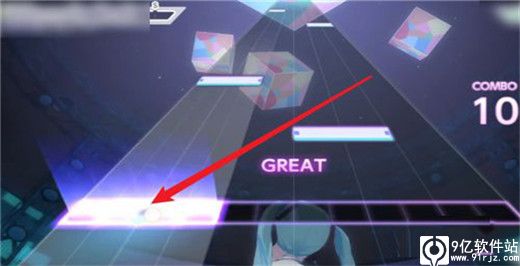 5、如图所示进入关卡跟随音乐节奏点击通过标线的【音符】获得游戏分数。