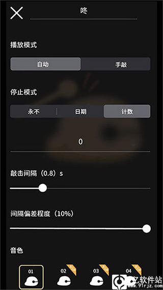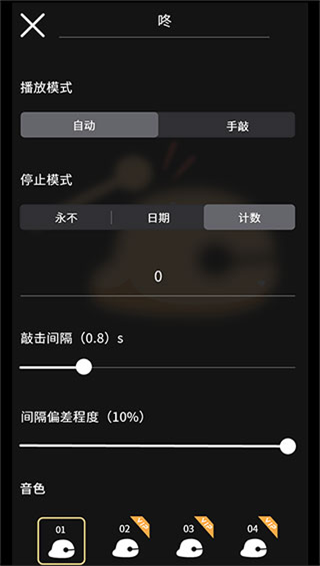 3、打开电子木鱼即可去设置播放的模式,你可以选择自动播放或者是手动敲击,完全是自定义的。
