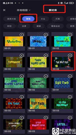 5、种类齐全的花字和贴纸、全网通用的视频素材,各类转场及音效