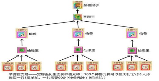 3 个神兽+1 个仙源玉=1 个仙兽 3 个仙兽+1 个圣源玉=1 个圣兽
