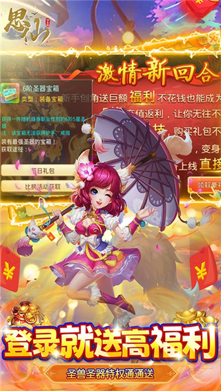 1、5倍充值返利,超高福利奖励,各种投资租赁功能拿到手软2、放弃传统回合制游戏过多不同的门派,简化为三个门派