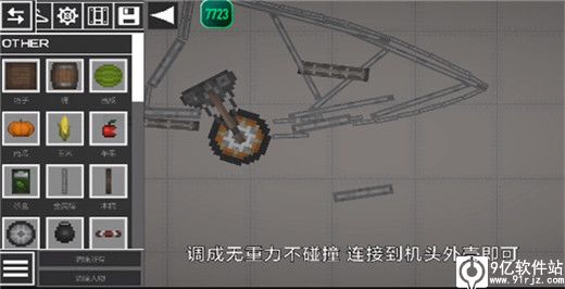 3、由于游戏采用物理引擎,你也可以发挥你的聪明才智制作各种机械,帮助你完成;