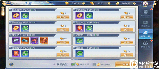 可以使用一键找回,快捷找回所有奖励,一键找回仅能使用同类型找回方式