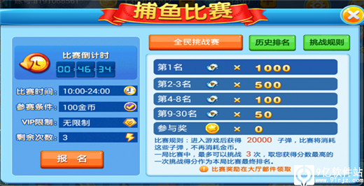 全民挑战赛:进入游戏后获得20000发炮弹,有限炮弹的情况下的分排名越靠前的玩家最终奖励越好。