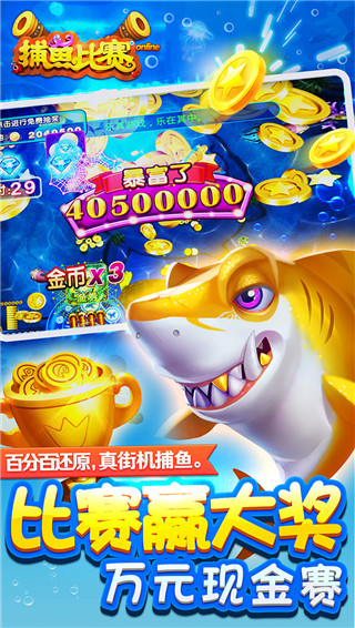 1、全真人玩法,百分百移植街机捕鱼玩法,打炮更刺激。2、最爽快的千炮多人对战。最高开启千炮开打,真人联网,看谁先打到鱼王。