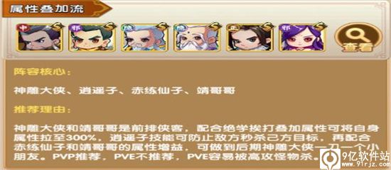 阵容核心:神雕大侠、逍遇子、赤练仙子、靖哥哥