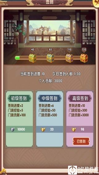 门派小知识1、门派签到:每日可以在门派签到吃大餐,根据所签到等级的不同获得的门派经验和贡献也会不同,达到一定签到进度后可以领取签到宝箱。