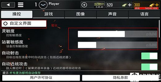 2、这里有灵敏度设置,玩过枪战类游戏的玩家建议选择自定义;