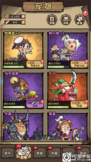 3、接下来进入到宠物界面,对已经获取的神将进行升级