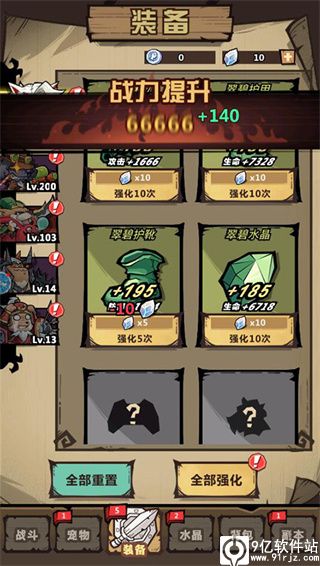 5、按照上述步骤操作就可以轻松提升整体战斗力了,升级和强化用到的材料和道具我们可以通过关卡以及副本挑战获取