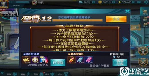 副本和宇宙监狱每次获取到经验都是固定的,玩家想要获取到更多的经验,提升VIP就是很好的选择,而仅仅成为至尊1就可以获得关卡加成25%的经验奖励,至尊12则可以获得1000%的经验加成,相当于别人打十次副本你只需要打一次,所以成为VIP的好处还是十分多的!