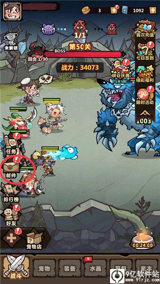 4、点击兑换后我们回到游戏主界面,然后点击一下邮件图标