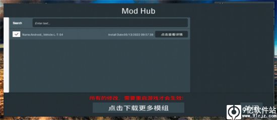 2、在游戏本地下载的mod模组文件后,我们需要重启一次游戏,才可在游戏中找到mod文件,如下图所示;