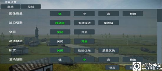4、进入设置,我们可对游戏内的图像质量、渲染引擎、材质、渲染范围、声音等属性进行自定义的设置,对于游戏运行比较卡顿的玩家,建议减少游戏内的画质,来提高运行的流畅性;