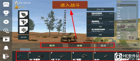 5、我们选择到想要体验的武器类型后,还可对驾驶载具的配件、涂装、贴花进行自定义的设置。都确定完成后即可点击“进入战斗”
