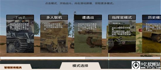 6、游戏一共包含遭遇战、联机、指挥官等九种模式,点击模式,开始战斗,向右滑动屏幕,获取更多模式;