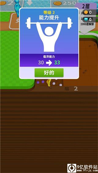 3、努力挖掘进行等级提升,这样可以提高我们的载货能力(载货能力越高,每次可以收集的小球就越多,就能兑换更多的金币,无需多次来回跑);