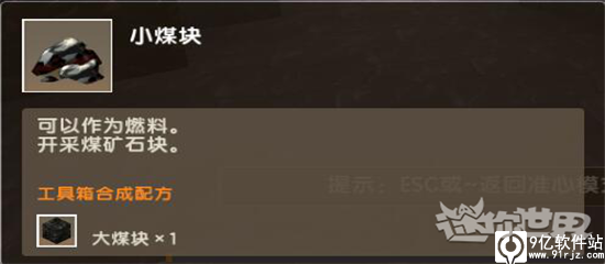 这个就是煤矿了,挖掘后可以获得小煤块,小煤块可以用来制作火炬或大煤块等物品,是游戏中重要的能源来源。