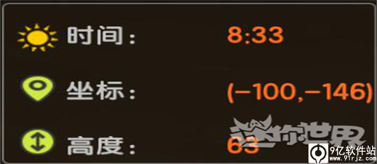 下一个是铁矿石,找到铁矿需要通过挖地来降低高度到63层以下才能发现,我们可以通过地图界面(电脑版按“M”键开启,手机版点击右上角地图)在左下角查看高度,越往下高度数值越低。