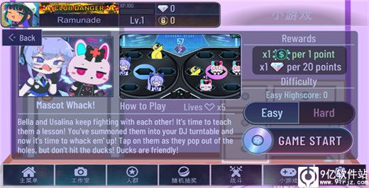 与打地鼠类似的模式,在这个小游戏中Bella和Usalina会从界面中的DJ工作台上左右两个碟子中的6个孔出现,其中还包括鸭子。