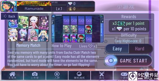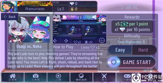 Easy难度下每1分可获得5倍Bits,每10分可获得一个Gems;Hard难度下每1分可获得6倍Bits,每10分也可以可获得一个Gems。