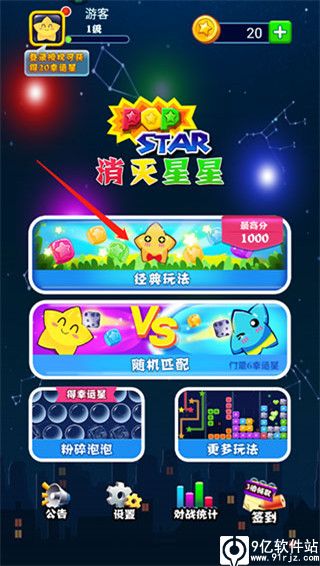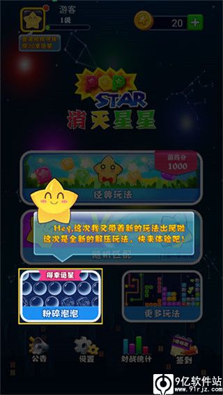 6、消灭星星最新版还提供了粉碎泡泡等多种游戏玩法可供选择。