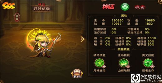 月神信仰,他的奥义效果可以为队友提供大量的暴击和攻击,同时还是一个打群体的英雄并且攻击带有石化效果;