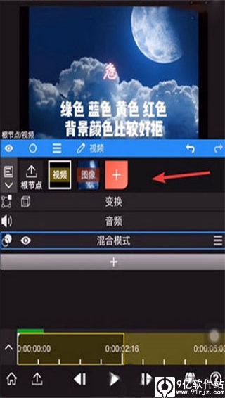 1、在软件中导入视频等基本素材之后,我们需要点击箭头所示的+,新建一个节点。