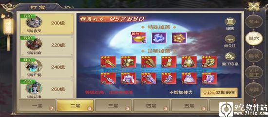 巢穴BOSS每一层的进入需要满足一定的VIP等级限制,但是首次击杀必定获得非绑定元宝,这也是其他游戏中没有的设计。而且是支持组队击杀的哦,如果自己实力不够,可以找大佬组队一起刷,首杀奖励都是独立计算的,每个玩家都可以获得,总计可获得1100元宝,相当于免费赚了一个半年V4卡,简直不要太爽!