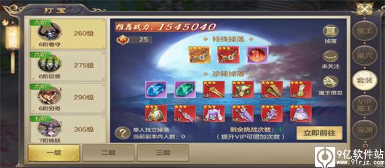 只有VIP4及以上的玩家,才可挑战VIP BOSS,挑战BOSS每次需要消耗2个魔王挑战册,VIPBOSS的奖励会更加丰厚,爆率也会比其他BOSS高,强烈推荐挑战哦!